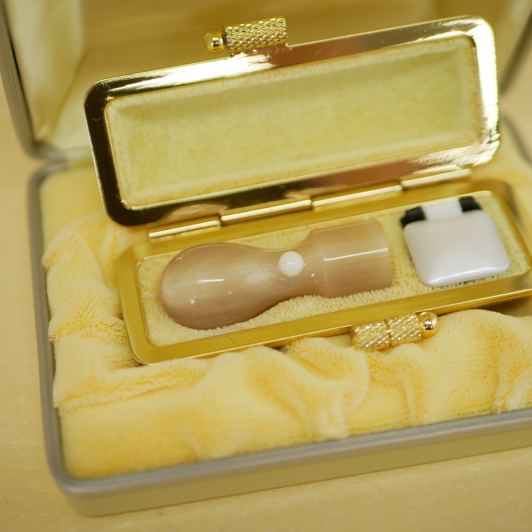 赤ちゃんはんこ オランダ水牛 イエローケースセット(名前または姓の彫刻)