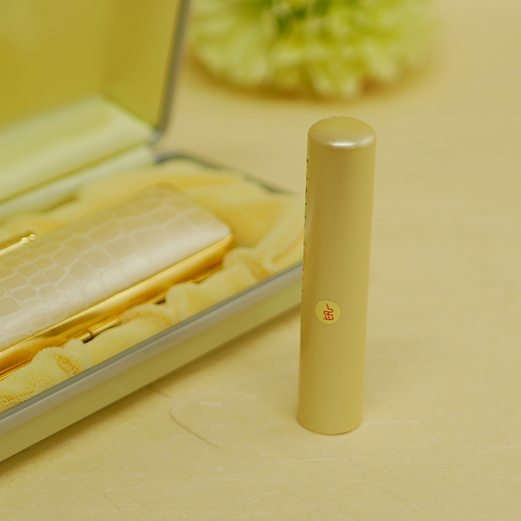 赤ちゃんはんこ"パール”イエローケースセット 印材ベビーホワイト(名前または姓の彫刻)
