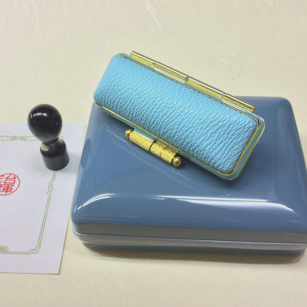 赤ちゃんはんこ 黒水牛 ブルーケースセット(名前または姓の彫刻)